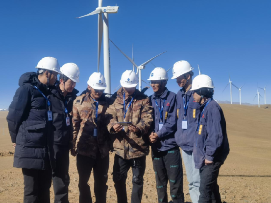 圖1 全球海拔最高(5100米)三峽西藏措美風(fēng)電場團(tuán)員青年在現(xiàn)場觀看黨的二十大